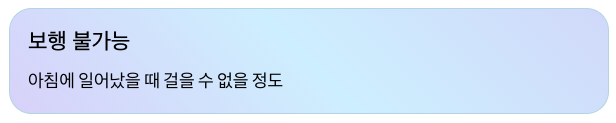 - 아침에 일어났을 때 걸을 수 없을 정도의 통증이 발생합니다.