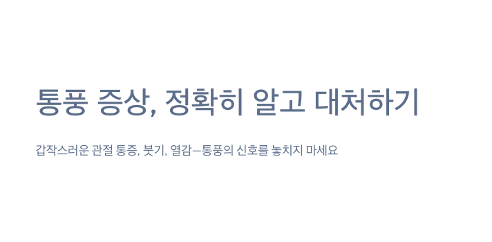 통풍 증상은 갑작스럽고 극심한 관절 통증, 붓기, 열감으로 시작되며 주로 엄지발가락 부위에 나타납니다. 초기에 대처하면 악화를 막을 수 있습니다.