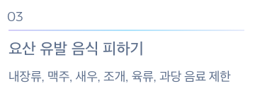 - 요산 유발 음식 피하기: