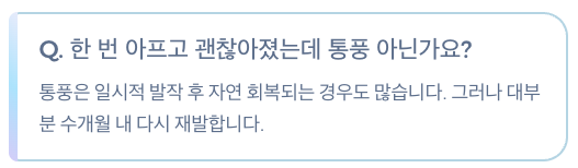 Q2. 한 번 아프고 괜찮아졌는데 통풍 아닌가요?