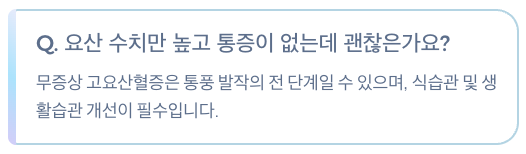 Q3. 요산 수치만 높고 통증이 없는데 괜찮은가요?