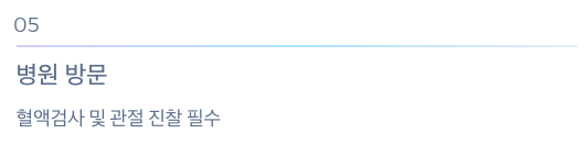 💡 자가진단보다는 빠른 시일 내에 병원에서 혈액검사 및 관절 진찰을 받는 것이 중요합니다.