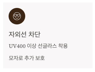 • 외출 시 UV400 이상 선글라스 착용을 생활화하세요.