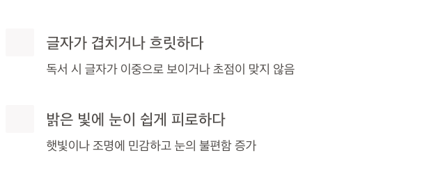 - 🔲 밝은 빛에서 눈이 쉽게 피로해진다