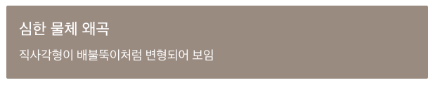 - 물체 왜곡 (예: 직사각형이 배불뚝이처럼 보임)
