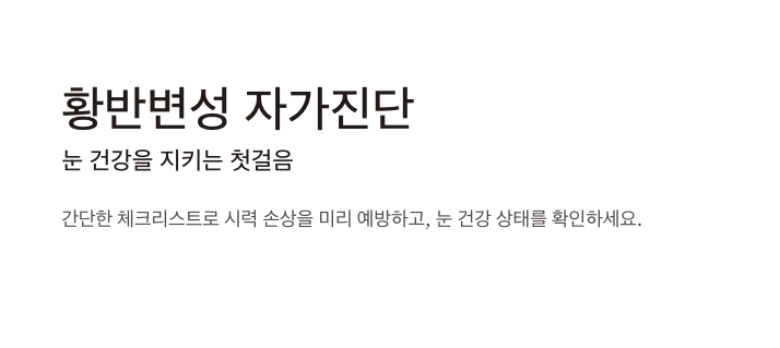 자가진단은 참고용일 뿐, 이상이 느껴질 경우에는 반드시 안과 전문의의 정밀 검사를 받아야 합니다.