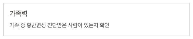 - 가족 중 황반변성 진단받은 사람이 있는지