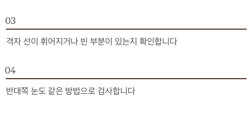 - 격자의 선들이 휘어져 보이거나, 빈칸처럼 보이지 않는 부분이 있는지 확인합니다.