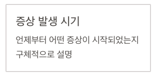 - 언제부터 어떤 증상이 있었는지