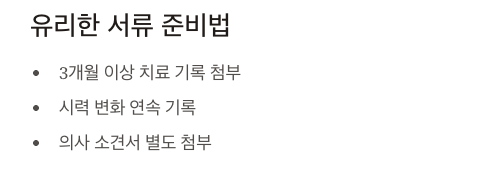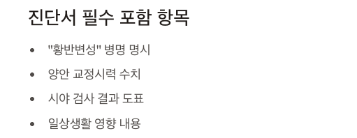 - 진단서에 수치가 모호하거나, 단순 노안으로 오해될 경우
