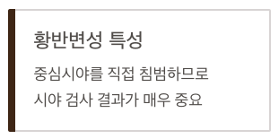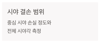 황반변성의 경우, 중심시야를 직접적으로 침범하므로 시야 검사 결과도 중요합니다.