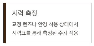 - 시력 기준은 교정 렌즈나 안경을 쓴 상태에서 측정된 수치입니다.