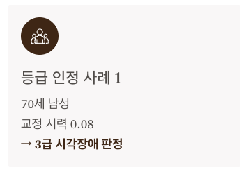 - ✅ 예시 1: 70세 남성, 황반변성으로 교정 시력 0.08 → 3급 시각장애 판정