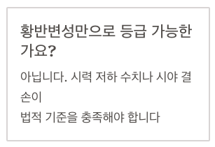 - Q. 황반변성만으로 장애등급 받을 수 있나요?